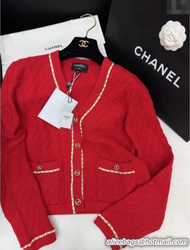 Good Product Discount Chanel Knit Cardigan CH121824 Red 2025