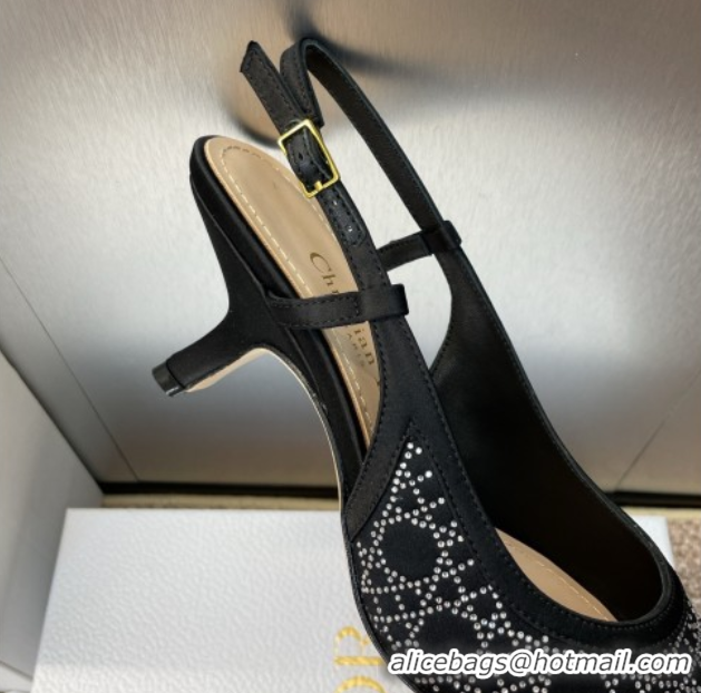 Luxury Cheap Dior Capture Slingback Pumps 6.5cm in Satin with Strass Cannage Motif Black 0822081