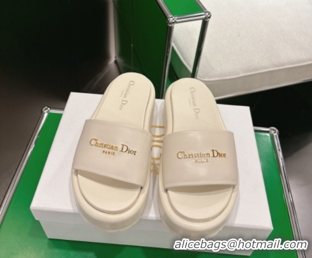 Charming Dior D-Lane Platform Slides Sandal in Padded Lambskin Leather White 2026 0302099