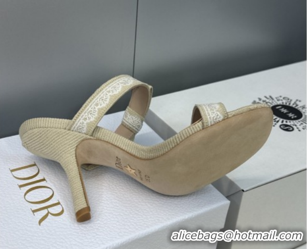 Grade Quality Dior Dentelle Bow Heeled Slides Sandal 9.5cm in Oblique Embroidered Cotton and White Lace Beige 2026 0302081