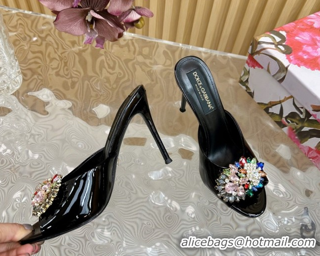 Popular Style Dolce & Gabbana Patent Leather Heel Slides Sandal 10cm with Strass DG121104 Black 2026