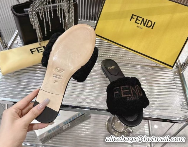 Popular Style Fendi Flat Slides Sandal in Shearling Wool Black 2025 FE103003 1030017