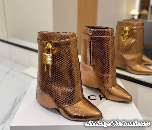 > Shoes Plaza > Givenchy Shoes > Popular Style Givenchy Shark Lock Wedge Ankle Boots 8.5cm in Snakeskin Embossed Leather 1210016 Bronze 2026