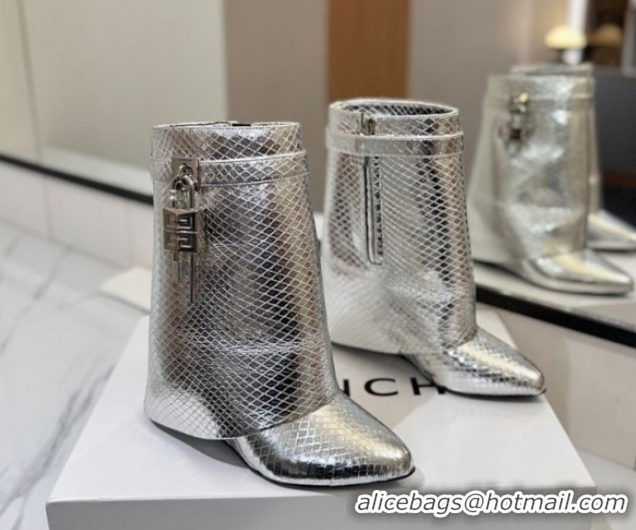 Charming Givenchy Shark Lock Wedge Ankle Boots 8.5cm in Snakeskin Embossed Leather 1210016 Silver 2026