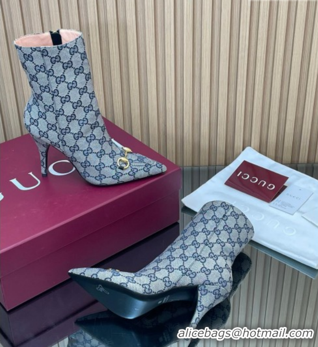Top Design Gucci GG Canvas Heel Ankle Boots 10cm with Horsebit 835741 Grey 2026
