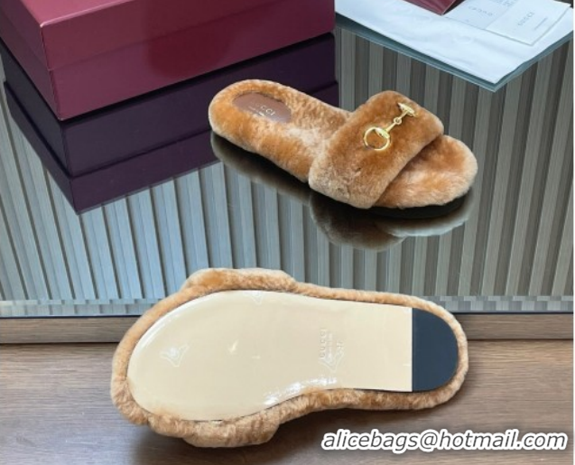 Pretty Style Gucci Merino Wool Flat Slides Sandal with Horsebit 852385 Brown 2026
