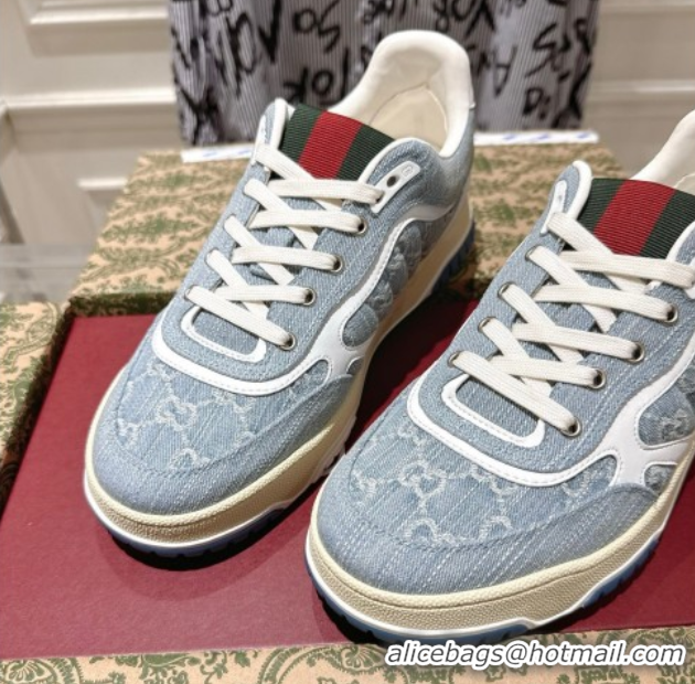Popular Style Gucci Re-Web Sneakers in GG Denim Blue 1021020