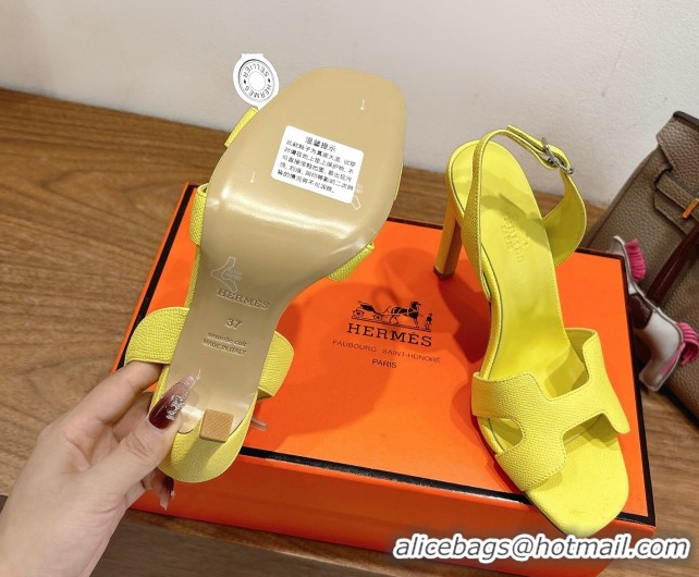 Popular Style Hermes Eremite Heel Sandals 10cm in Grained Leather Bright Yellow H02275 1023158
