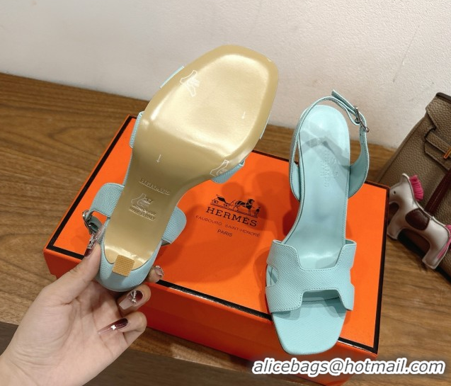 Charming Hermes Eremite Heel Sandals 10cm in Grained Leather Light Blue H02275 1023154