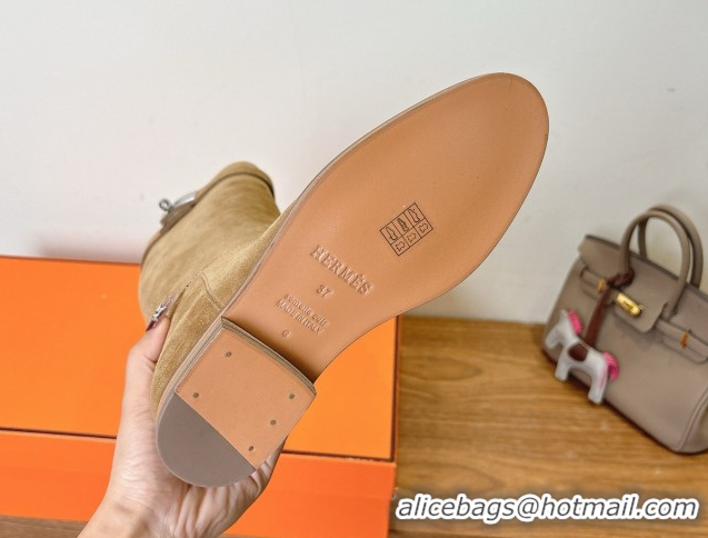 Popular Style Hermes Jumping High Flat Boots in Suede with Kelly Buckle Strap Brown2 H102302 1023071