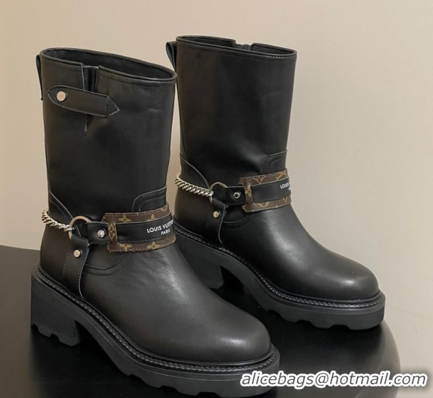 Good Looking Louis Vuitton LV Beaubourg Ankle Boots 4cm in Leather with Chain Strap Black 1AIBQR 1022051