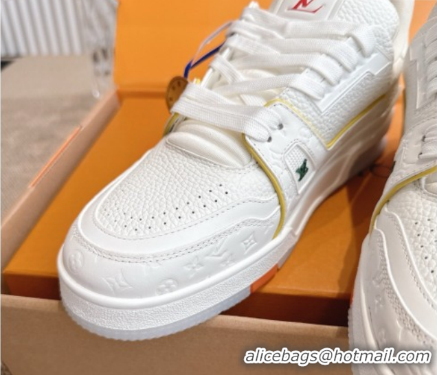 Top Grade Louis Vuitton LV Trainer Sneakers in Grained Leather White/Orange 2026 1A8WAZ 0303116