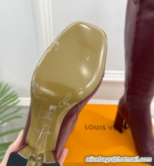 Grade Quality Louis Vuitton Swing Heel High Boots 9cm in Calf Leather Burgundy 1AID09 1021109