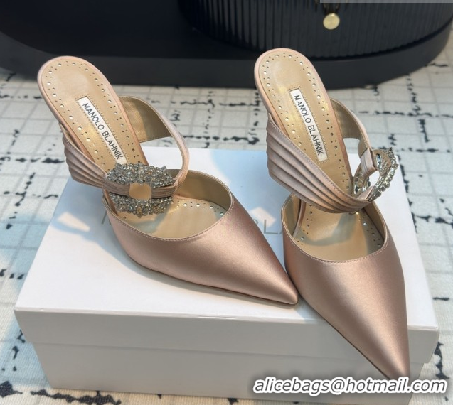 Classic Hot Manolo Blahnik Crystals Embellished Mules in Satin 9cm Heel 5112514 Nude 2026