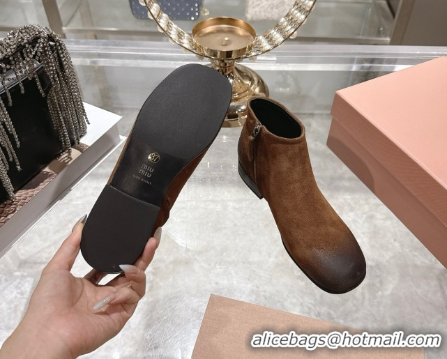 Popular Style Miu Miu Fumé Suede Flat Ankle Booties Brown 5T519E 1024130