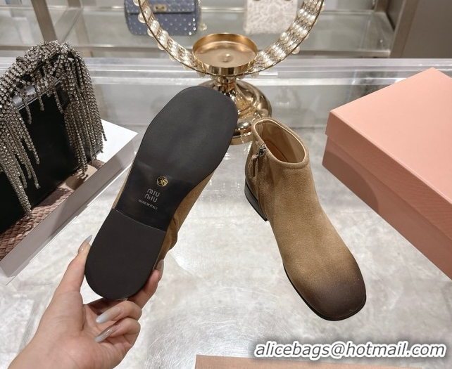 Luxury Miu Miu Fumé Suede Flat Ankle Booties Beige 5T519E 1024131