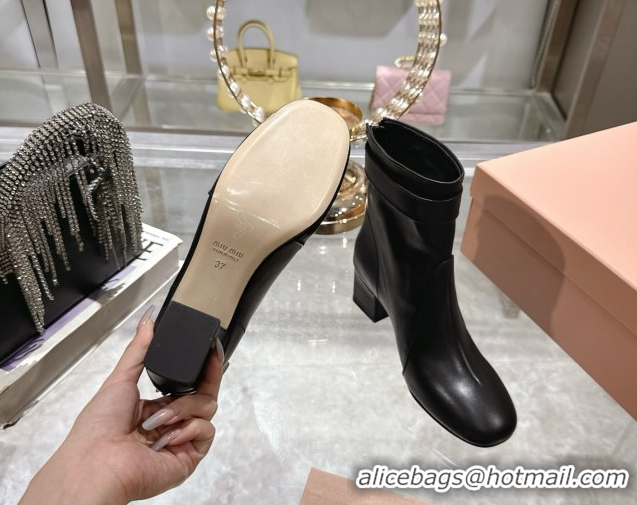 Shop Duplicate Miu Miu Nappa Leather Heel Ankle Boots 6cm with Buckle Black 5W548E 0826030