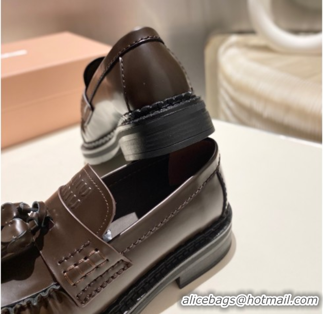 Shop Duplicate Miu Miu Tassel Loafers in Polished Leather Dark Brown 5D497E 1025004 2025