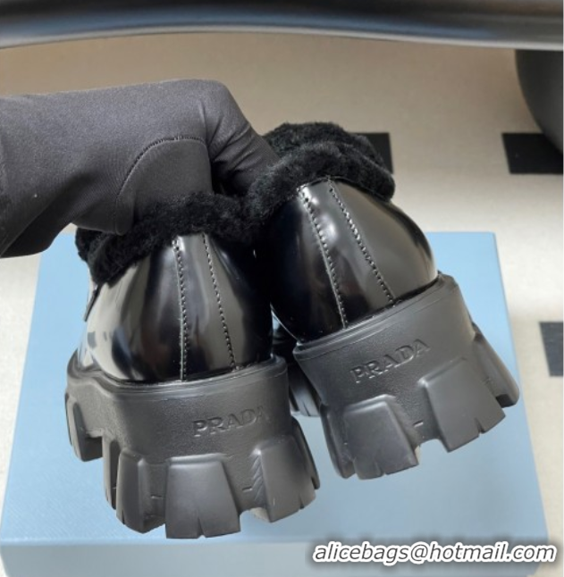 > Shoes Plaza > Prada Shoes > Most Popular Prada Monolith Brushed Leather and Wool Platform Loafers 5cm Black 2025 1D649M 1027050