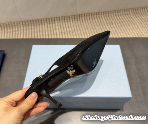 Popular Style Prada Suede Heel Slingbacks Pump 7.5cm Black PR120601 1206003 2026