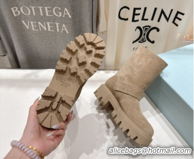 Popular Style Prada Suede Platform Booties 5cm with Buckle Beige 2025 1U187O 1027072