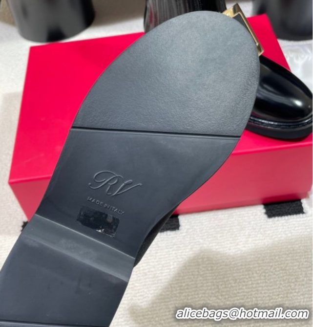 Popular Style Roger Vivier Viv' Rangers Flat Chelsea Booties in Patent Leather with Strass Buckle Black RV121206 2026