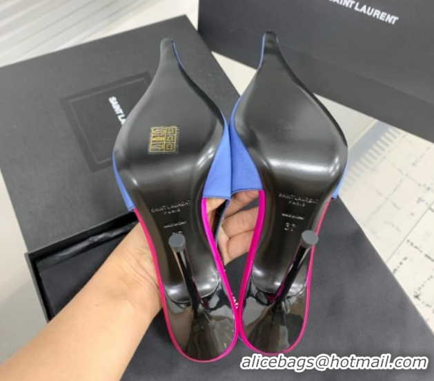 Popular Style Saint Laurent AMALIA Heel Slingbacks Pump 11cm in Satin Blue 1212093