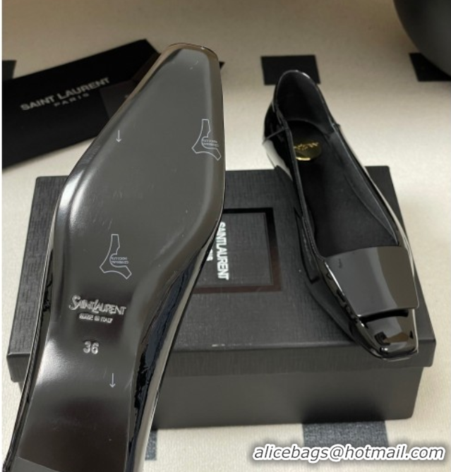 Popular Style Saint Laurent Cassandre Ballerinas Flat with Square Buckle in Patent Leather Black 0825104