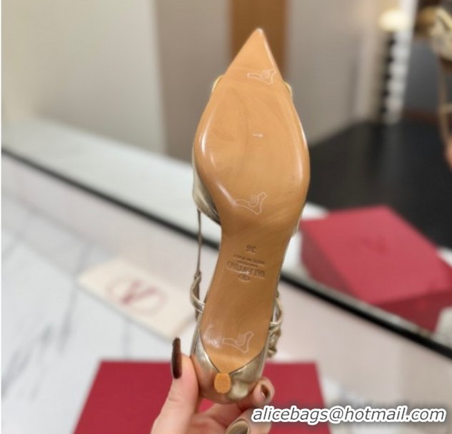 Your Position: Home > Shoes Plaza > Valentino Shoes > Shop Duplicate Valentino VLogo Signature Slingback Pumps 4.5cm in Calfskin with Strass Gold-Tone 2025 VA082109