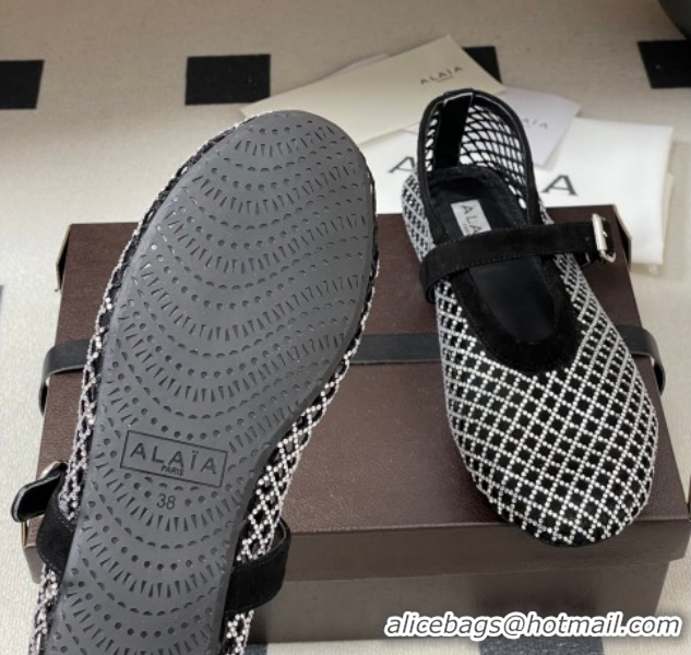 > Shoes Plaza > Alaia Shoes > Pretty Style Alaia Ballet Flats in Fishnet and Suede with Strass Black/Silver AL020702