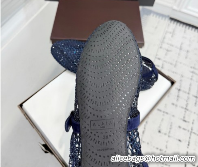 Grade Quality Alaia Ballet Flats in Fishnet and Suede with Strass Royal Blue AL020702