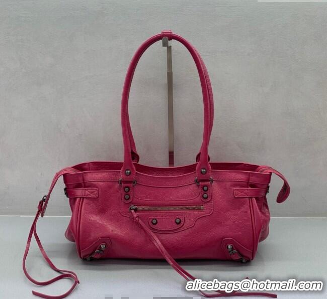 Pretty Style Balenciaga Le City Bag East West in Lambskin Leather 0926 Framboise Red 2025