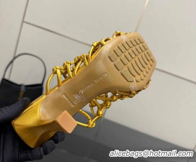 Your Position: Home > Shoes Plaza > Bottega Veneta Shoes > Sumptuous Bottega Veneta Riva Heel Mules 9cm in Woven Knotted Leather with Frog Charm Gold 0823006