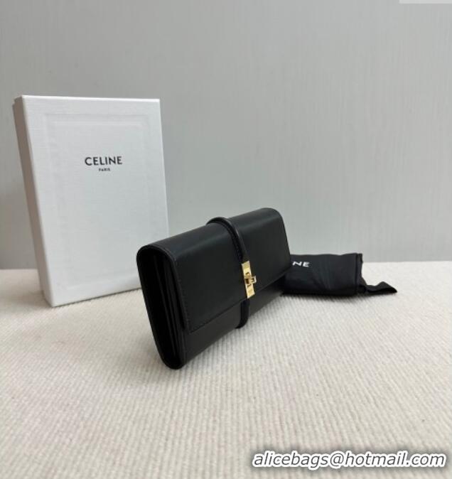 Inexpensive Celine Large Wallet 16 in Satinated Calfskin 10M033 Black 2025