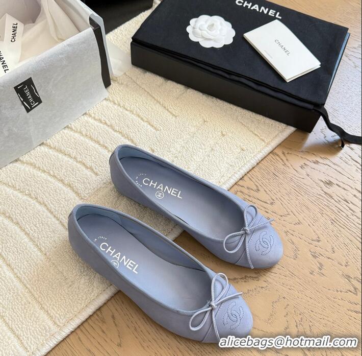 Pretty Style Chanel CC 25C Ballet Flat With Bow Suede/Calfskin CH1023 Blue