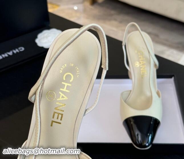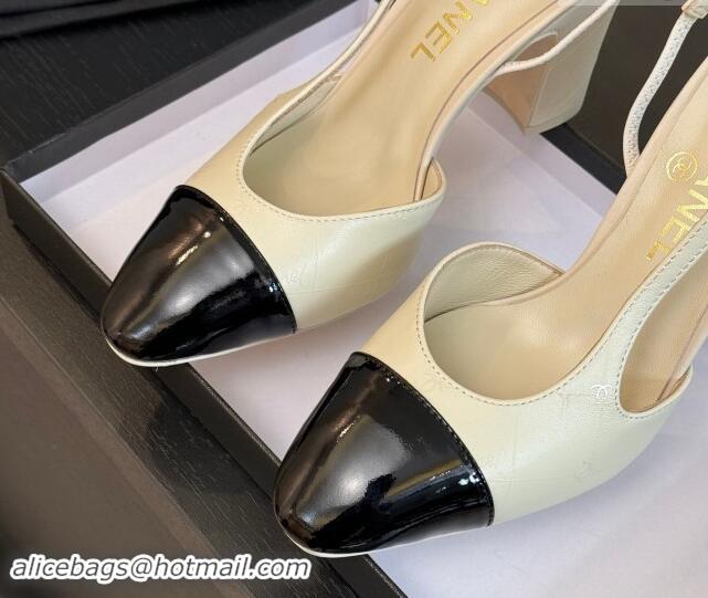 Pretty Style Chanel Printed Quilted Lambskin & Patent Calfskin Slingbacks Pumps 9.5cm White 1121070