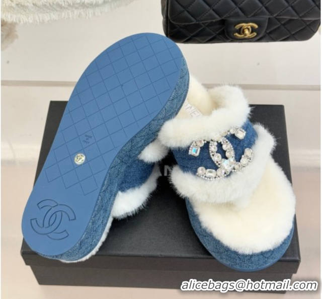 Top Grade Chanel Denim and Wool Platform Slides Sandal with Strass CC Blue 2025 CH110307 1103089