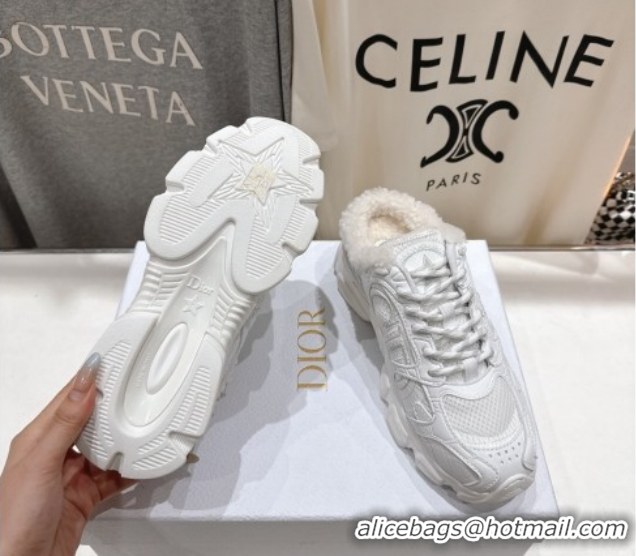Grade Quality Dior Chrono Sneaker Mules in Mesh, Leather-Effect and Wool White 51029070