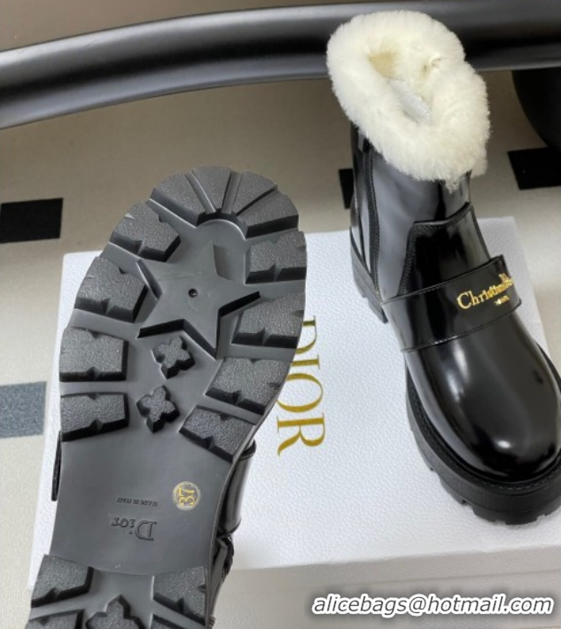 Grade Quality Dior DiorAlps D-Quest Ankle Boots in Shiny Calfskin and Wool with Buckle Strap Black DR121609 1216120