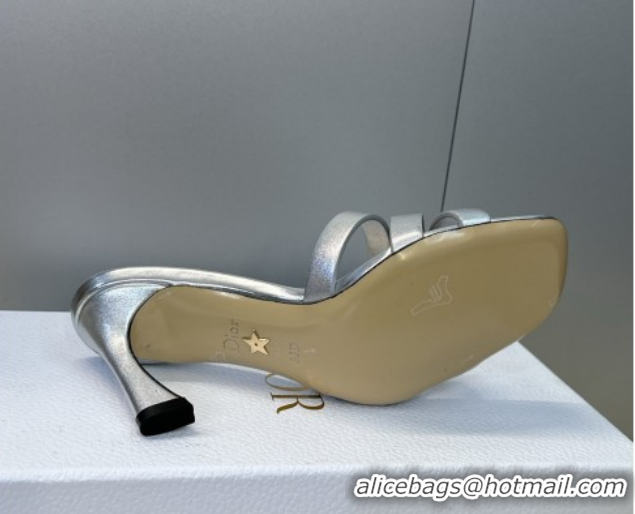 Pretty Style Dior Or 30M Heeled Slides Sandal 8cm in Calfskin Leather with CD Pearl Silver 0302078