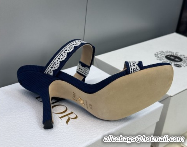 Unique Style Dior Dentelle Bow Heeled Slides Sandal 9.5cm in Oblique Embroidered Cotton and White Lace Blue 0302079