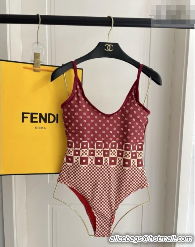 Pretty Style Fendi Logo Print One-Piece Swimwear 0313 Red 2025
