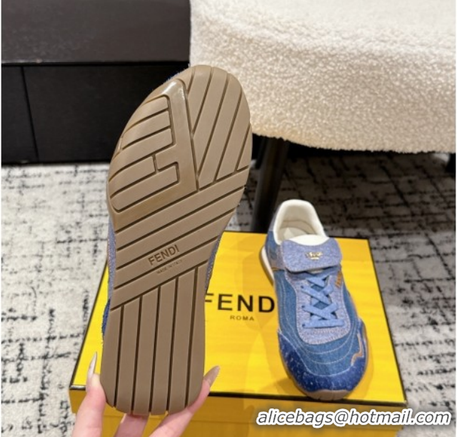 Pretty Style Fendi Wave Pulse Low-tops Sneakers in Blue Denim and Suede 1216067 2026