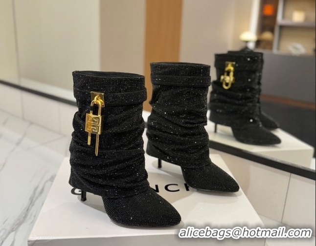 Pretty Style Givenchy Shark Lock Heel Ankle Boots 10.5cm in Strass Allover Black 1210041