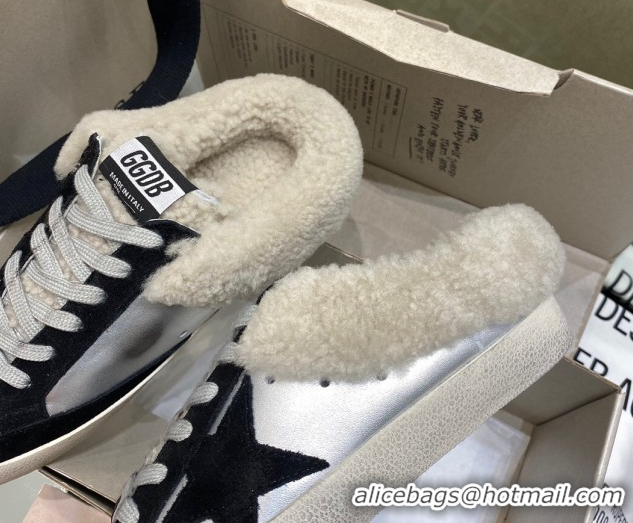 Stylish Golden Goose Women's Super-Star Sabots Sneaker in Silver Leather and Wool GGDB103112 1031067