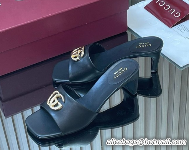 Classic Hot Gucci Lambskin Leather Heel Slides Sandal 5.5cm GG030503 Black 2026