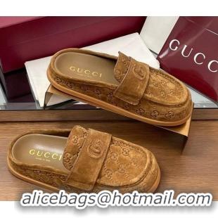 Good Quality Gucci GG Suede Flat Mules with Double G Light Brown 2025 817468