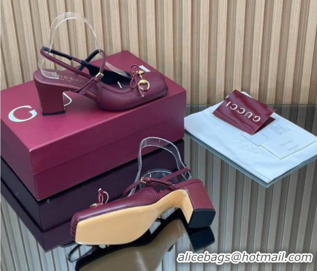Purchase Gucci Horsebit Slingback Pumps 6.5cm in Calf Leather 850327 Dark Burgundy 2026