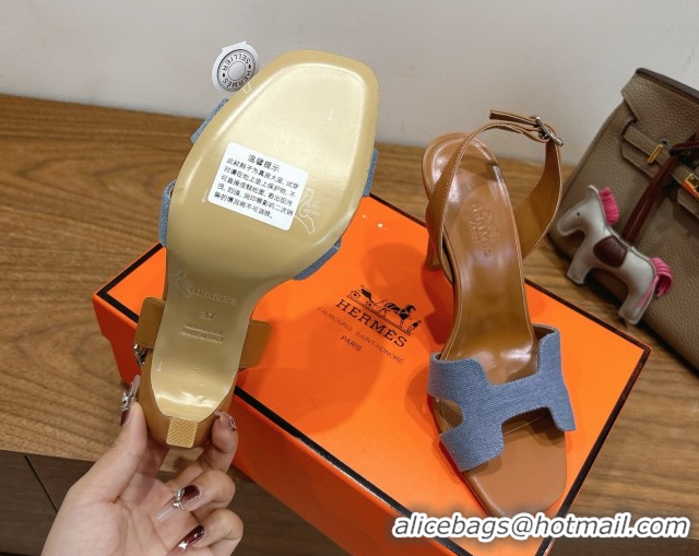 Pretty Style Hermes Eremite Heel Sandals 10cm in Denim and Leather Light Blue H02275 1023145