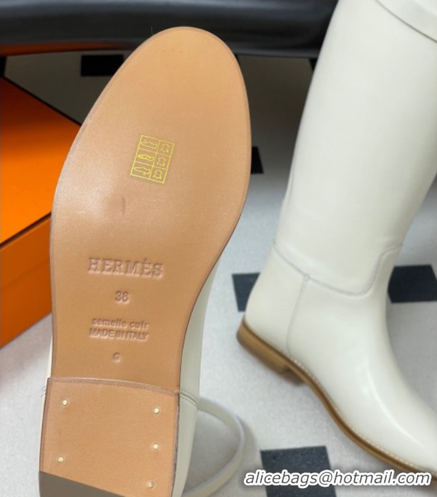 Original Cheap Hermes Jumping Boots in Calfskin with Kelly Strap White 2025 H082001 0820006